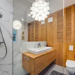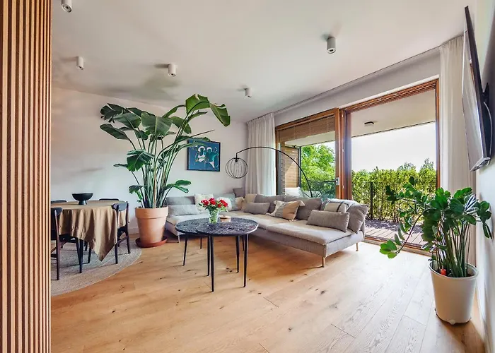 Fish Garden - Nadmorski Park Danzica, di 50 m^2, si trova a 10 minuti in macchina dallo Stadio Energa di Gdańsk e offre un patio soleggiato con un angolo cottura. L'aeroporto di Danzica Lech Wałęsa dista 15 km dall'appartamento, mentre il Teatro Forest Opera è a circa 7 km.